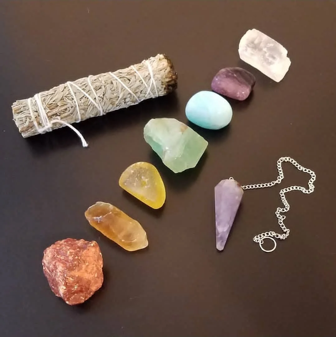 Sage, chakra crystals, & a pendulum